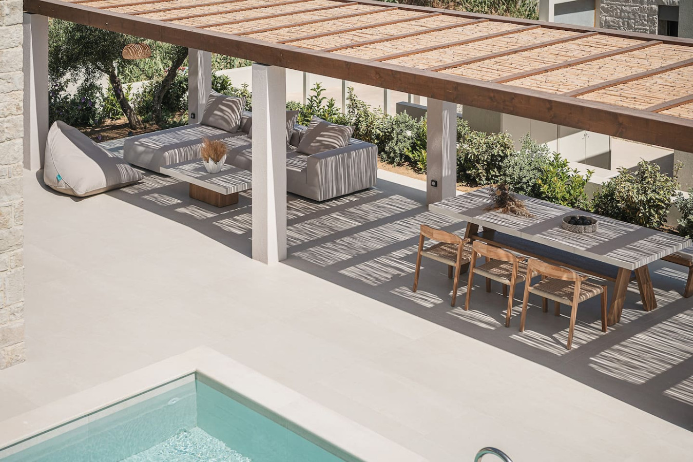 Shaded lounge and seating areas