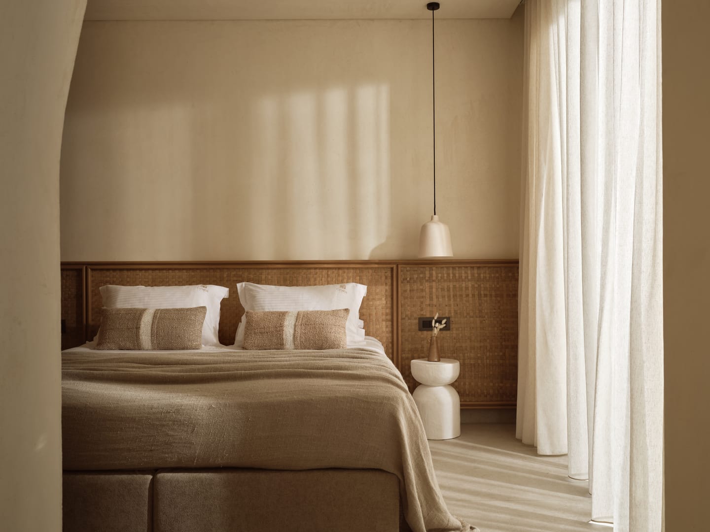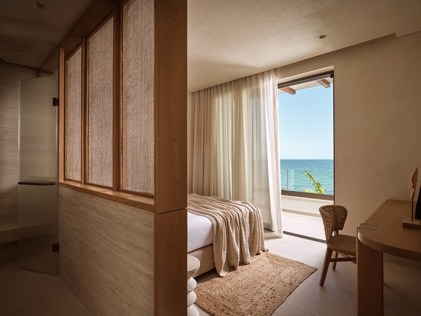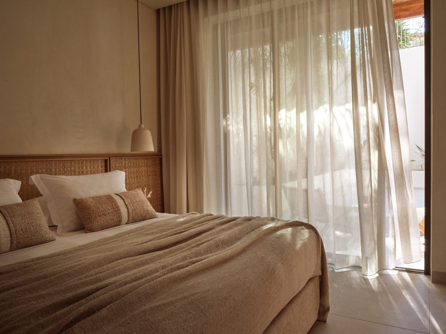 Coco-Mat beds and premium linens elevate rest to a luxurious ritual, while marble-tiled floors bring a clean, refined aesthetic to every room.