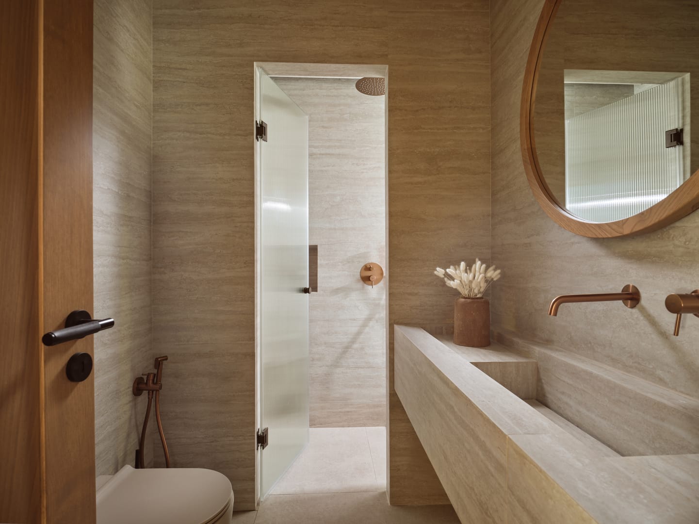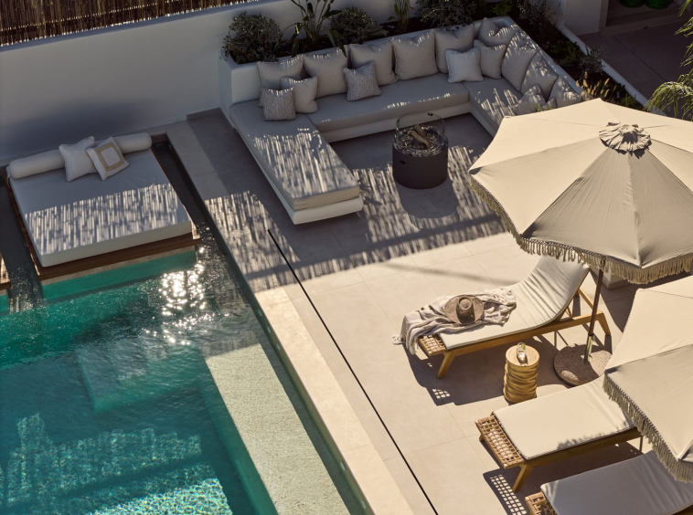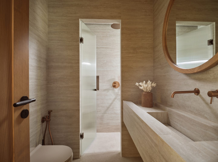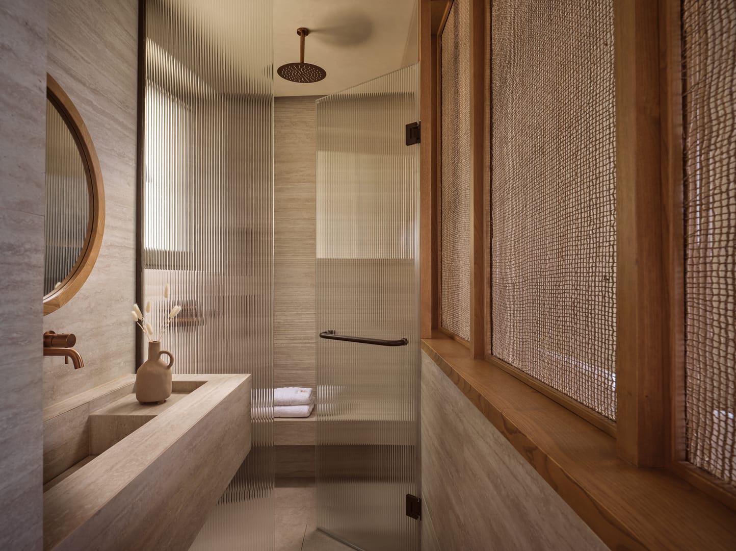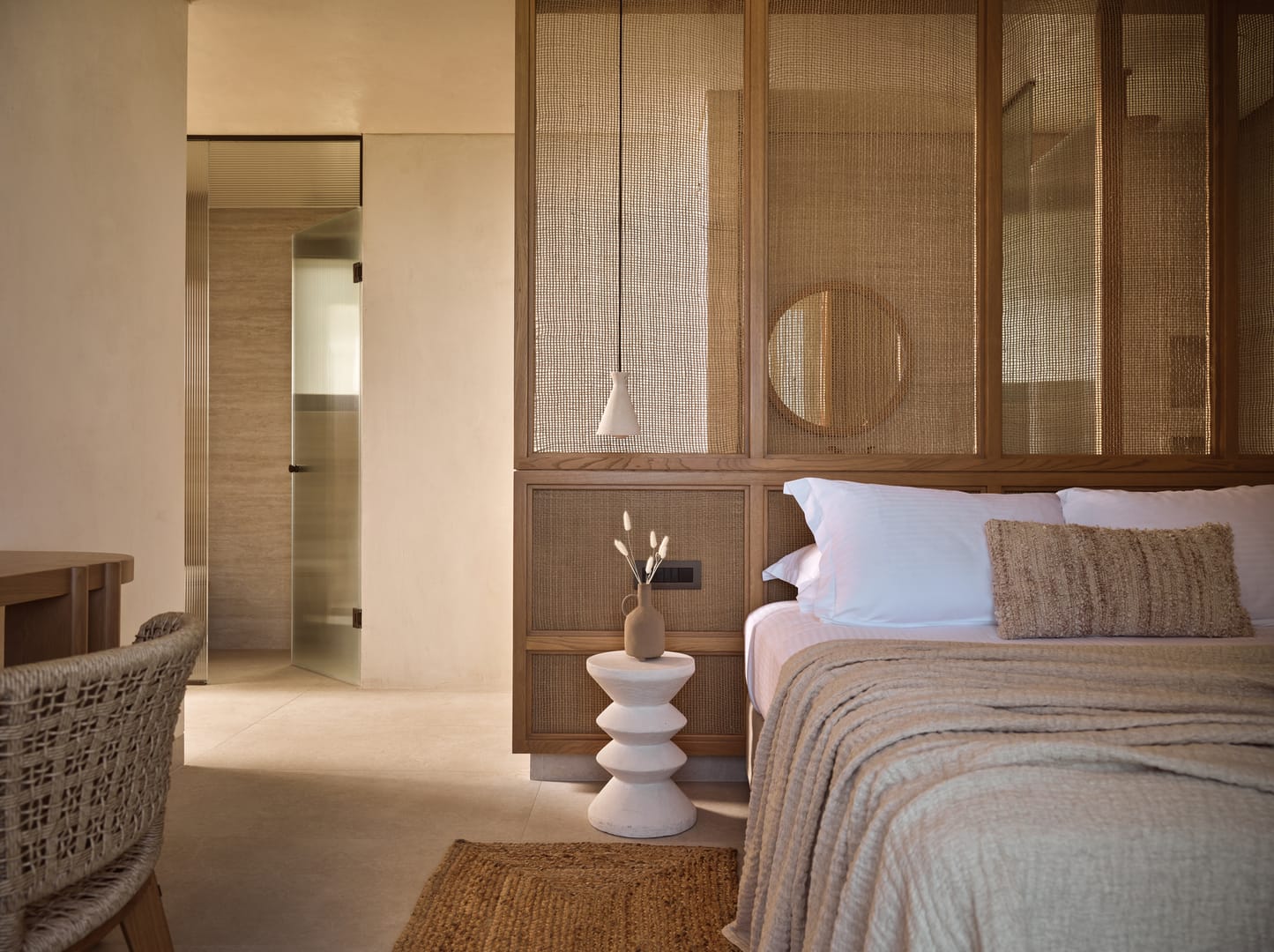 Coco-Mat beds and premium linens elevate rest to a luxurious ritual, while marble-tiled floors bring a clean, refined aesthetic to every room.