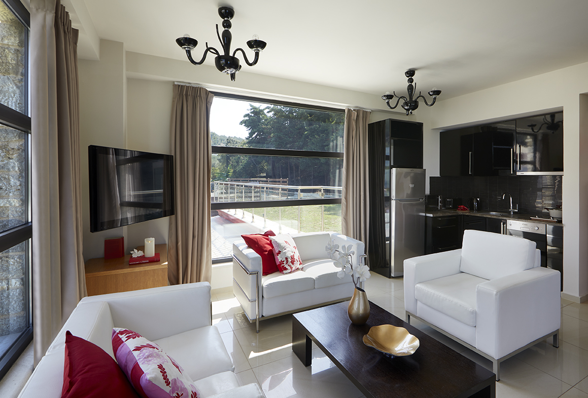 2 bedrooms with double beds, private balconies and satellite TVs