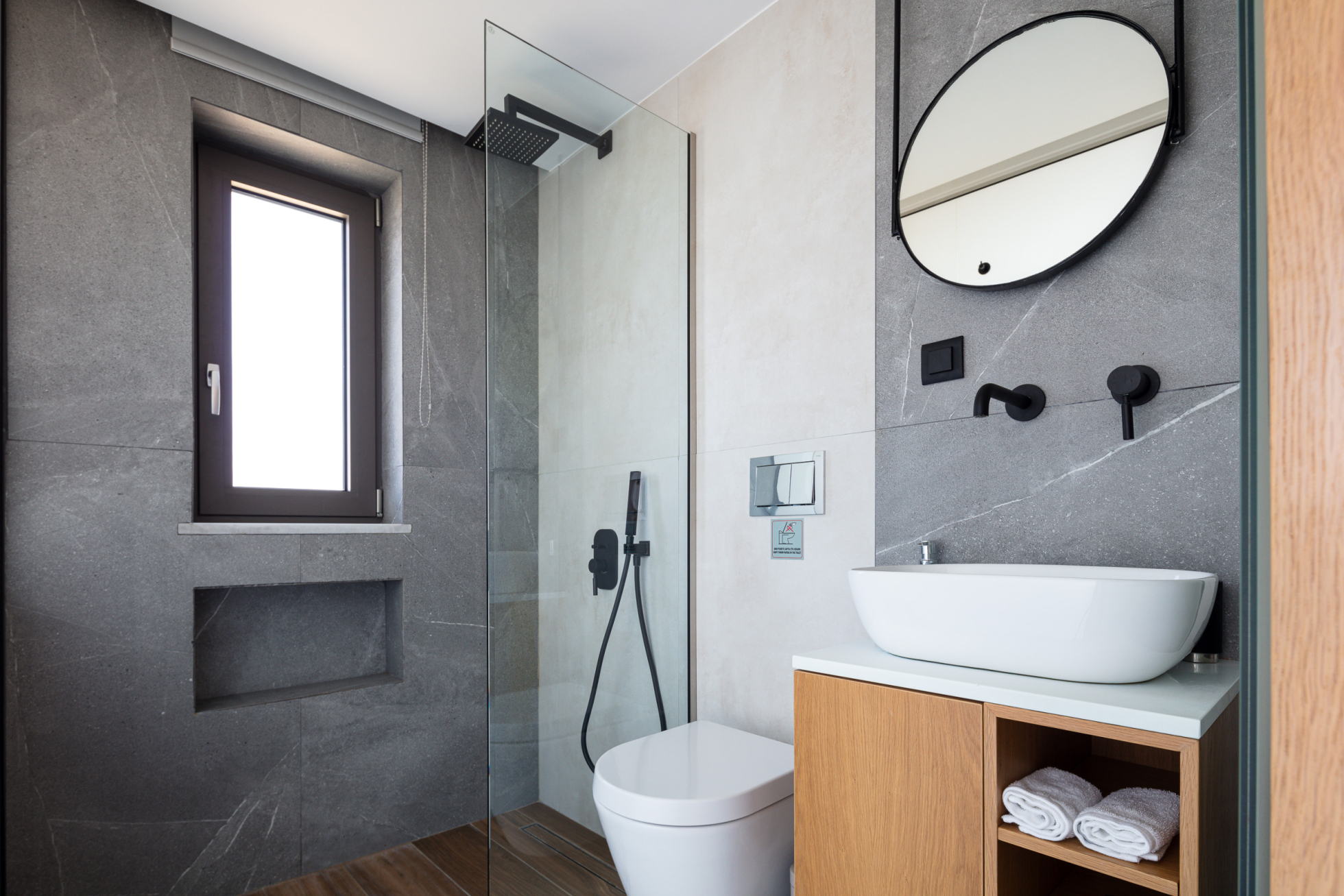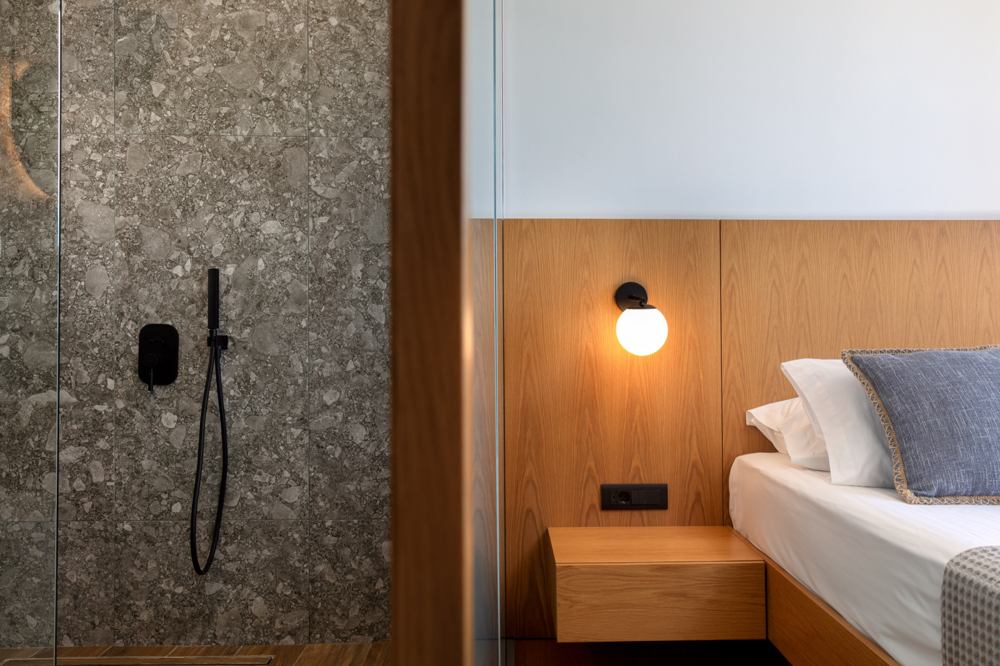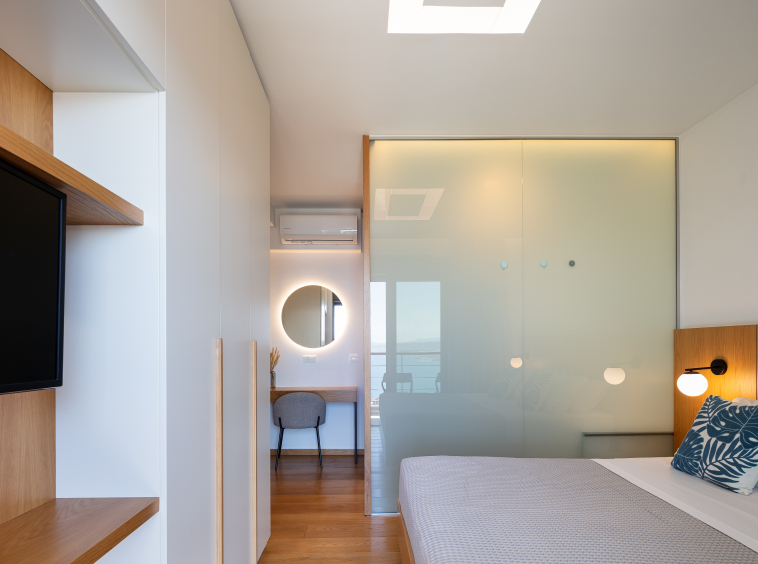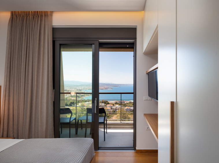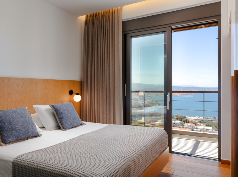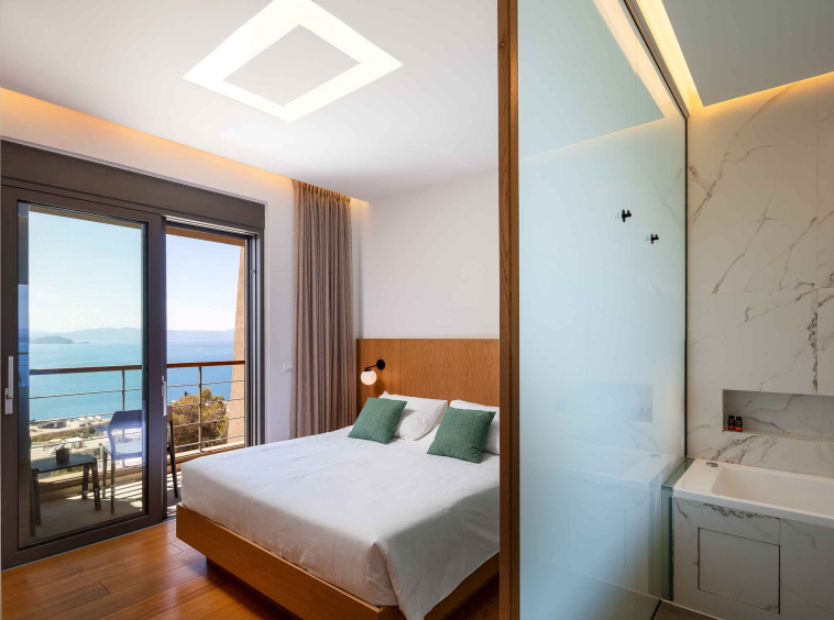 – Bedroom 1: Double bed (1.60×2.00), A/C, 32’’ Smart Satellite TV, ensuite bathroom with bathtub, hairdryer, safe box, private balcony with sea view