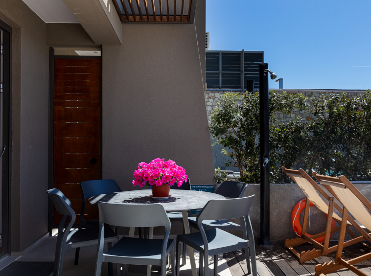 – Bedroom 2: Double bed (1.60×2.00), A/C, 32’’ Smart Satellite TV, ensuite bathroom with shower, hairdryer, private balcony, sea view
