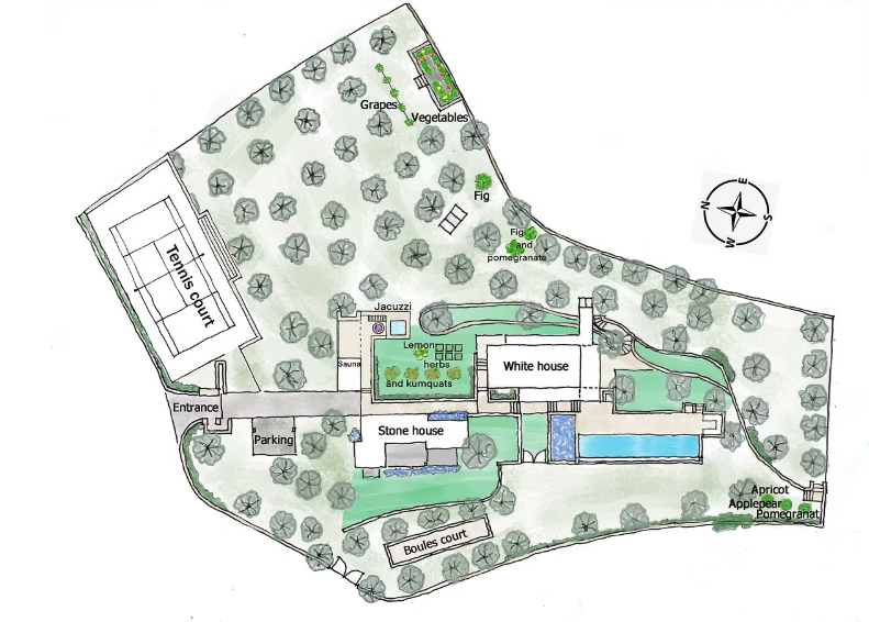 • Distinct architectural identities — the Stone House (2017) and the White House (Energy A+, triple-glazed, solar-powered)