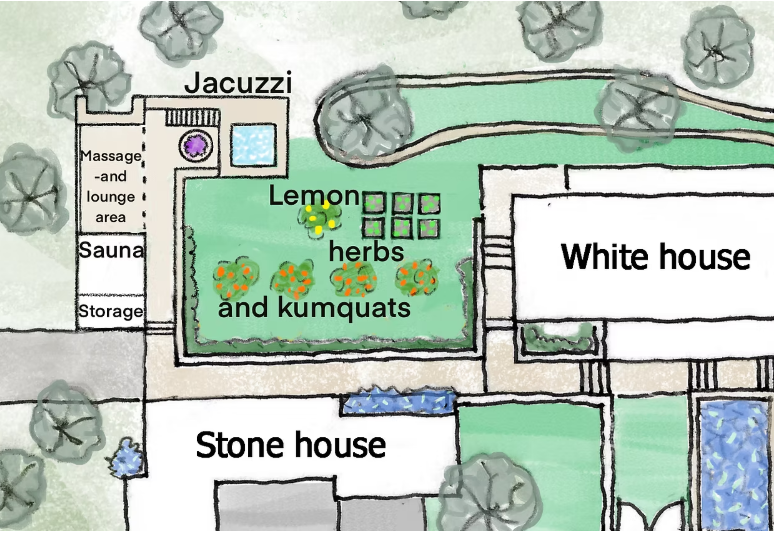 Then, the spa area and Stone House emerge, followed by the serene atrium garden and White House.