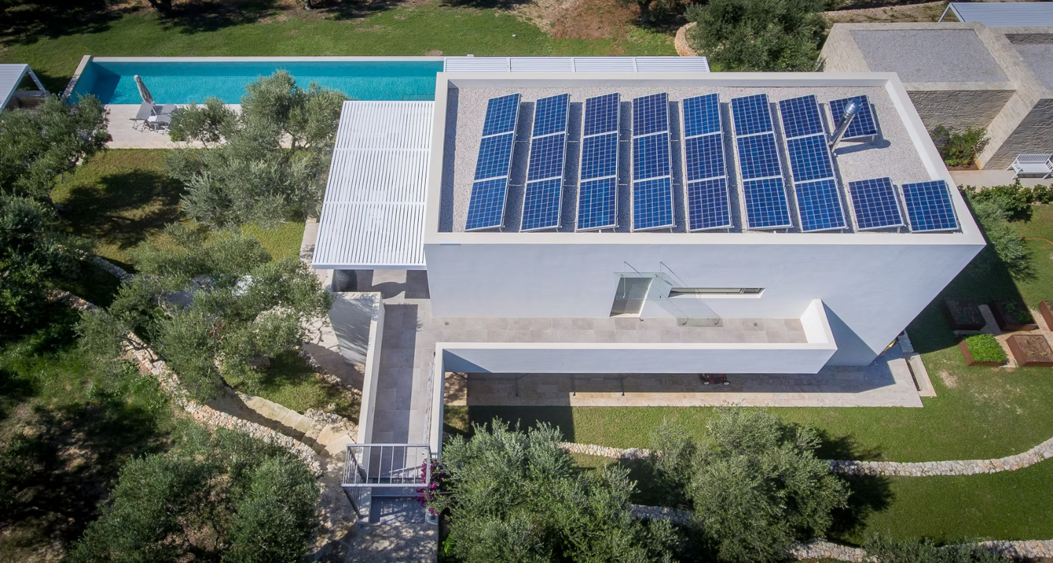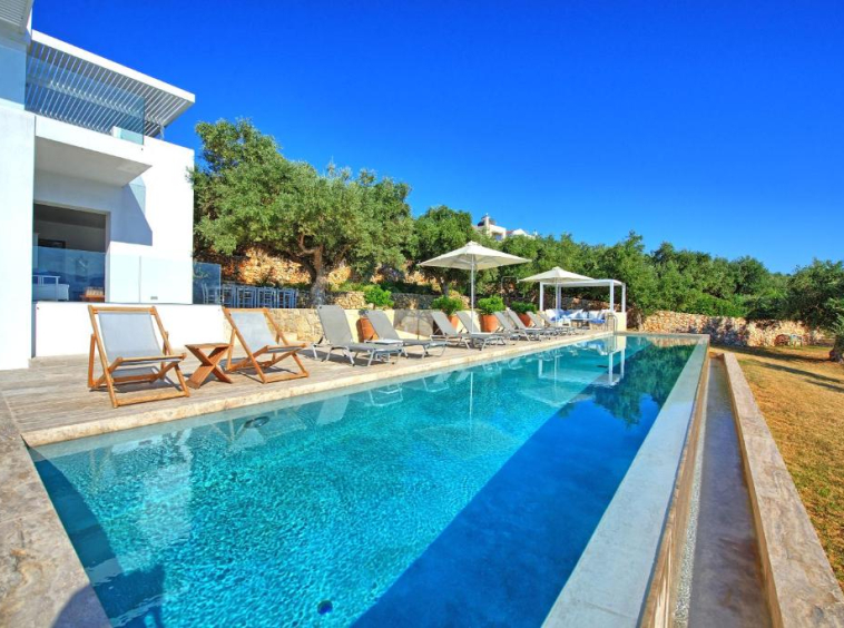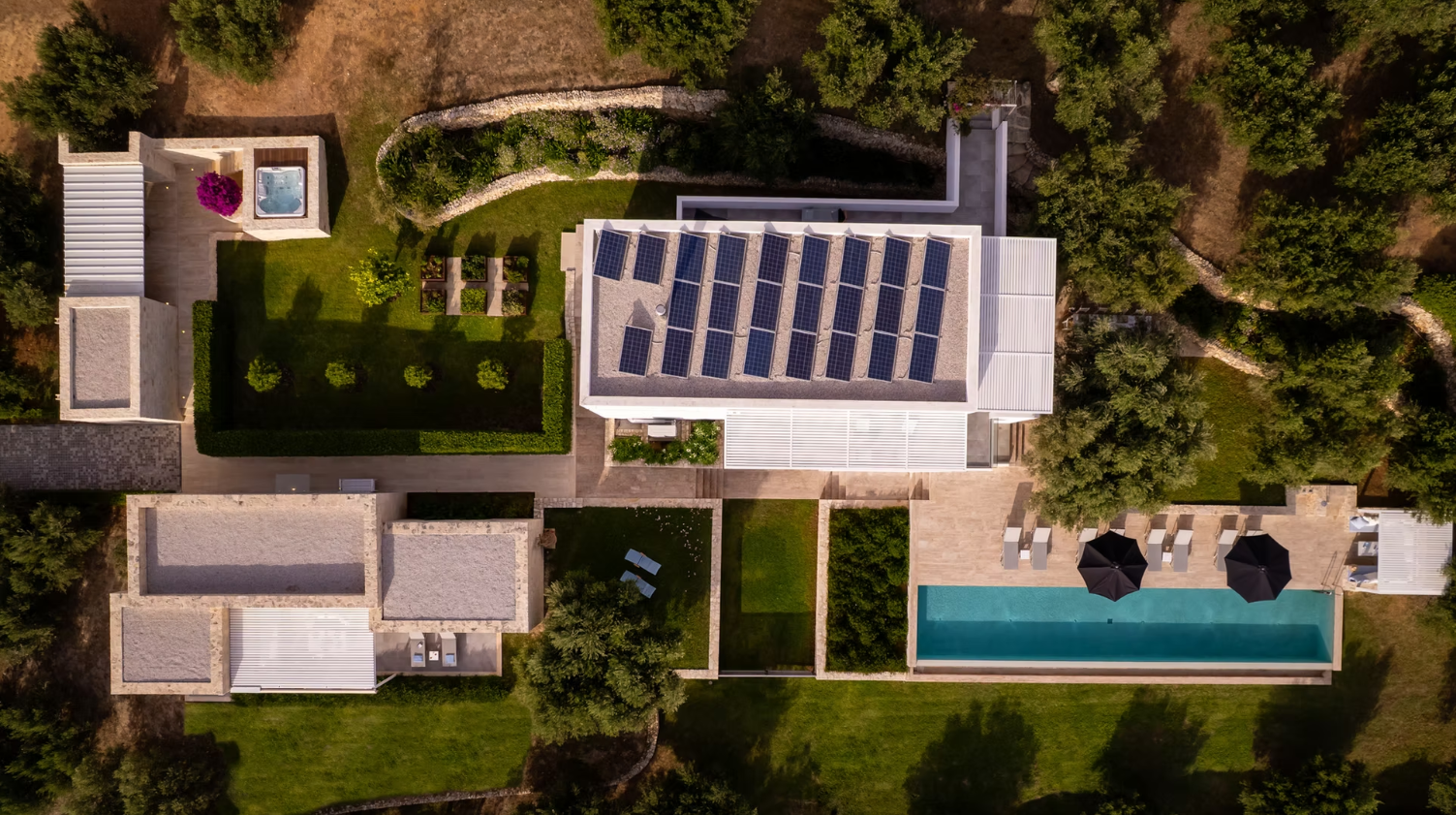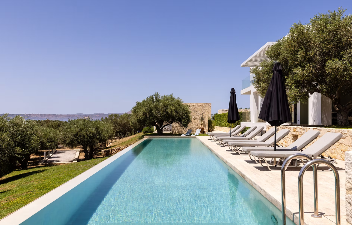 Two independent villas are set along a central axis, designed for privacy and connection. Old stone walls and olive trees are woven into the layout, blending heritage with modernity.