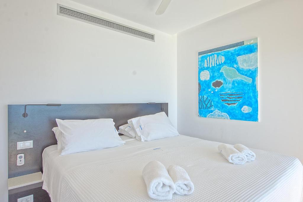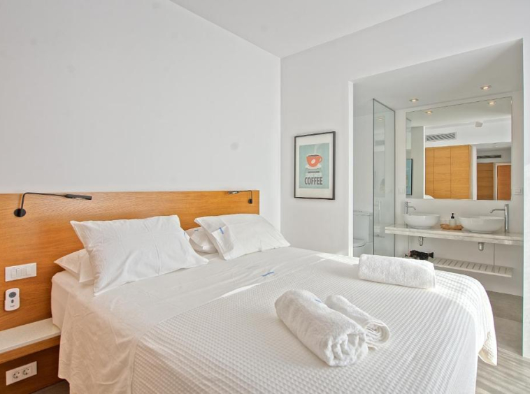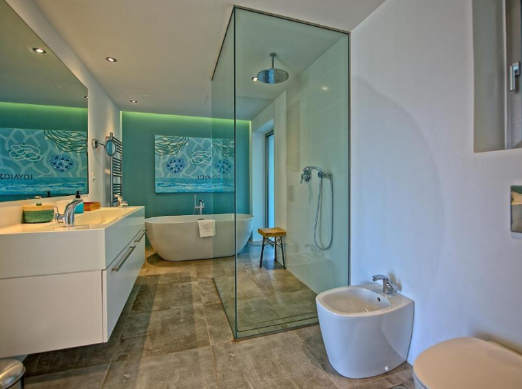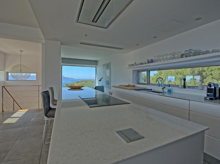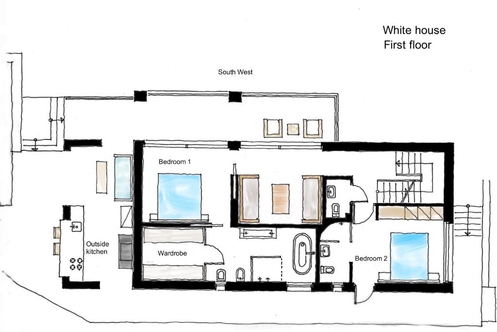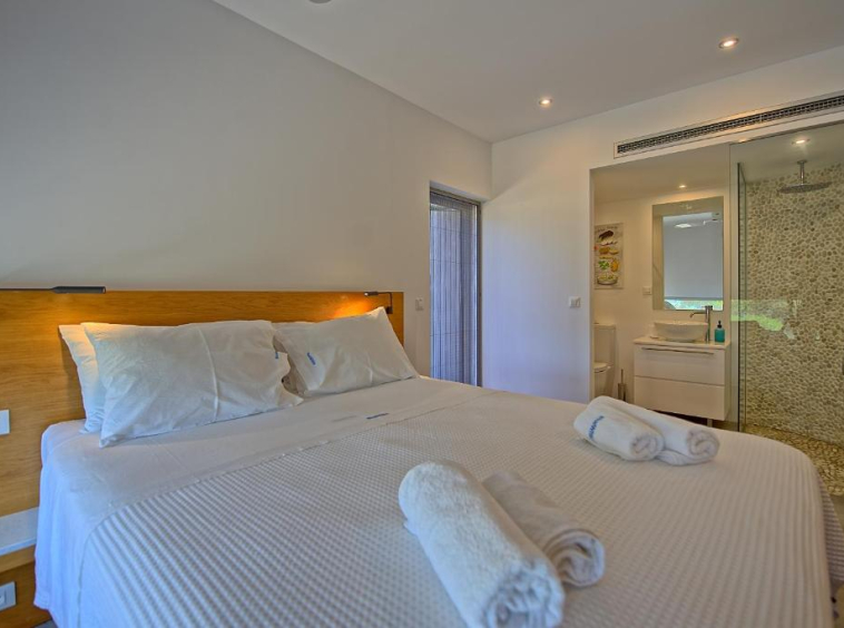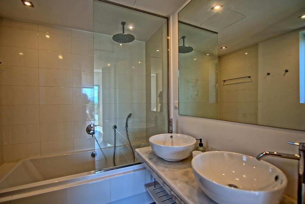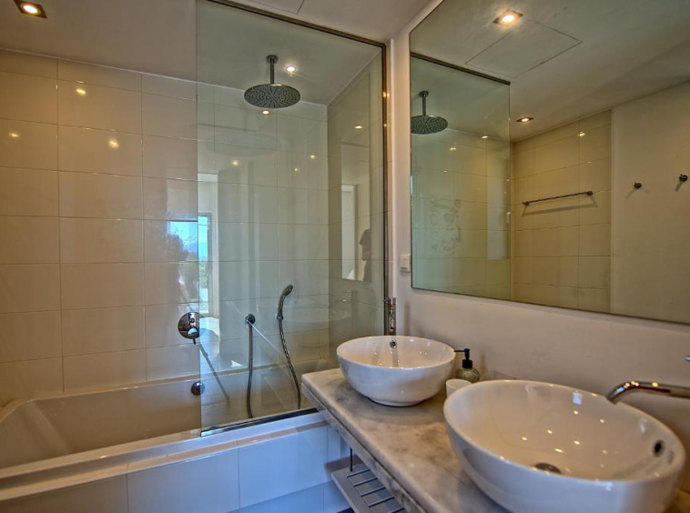 On the first floor there are 2 bedrooms, - a large master bedroom with sea and mountain views, with bathtub and walk in closet, and an en-suite double bedroom with views of the atrium garden.