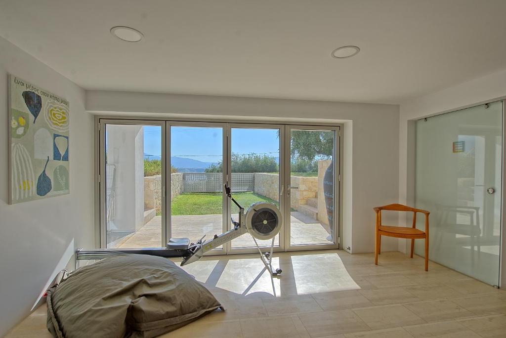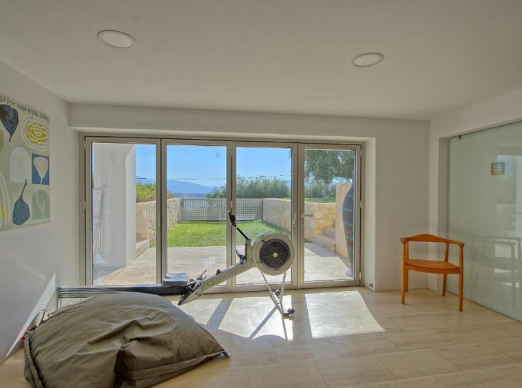 The ground floor consists of a bedroom with its own bathroom and laundry room. On this floor you also have a storage room for wine and olive oil and a technical room. You have a large family room that can be used for many different purposes depending on your needs, - gym, playroom, office, hobby room, etc. The room is registered as a garage with space for a big car. The glass doors can be folded together so that the wall can be completely open.