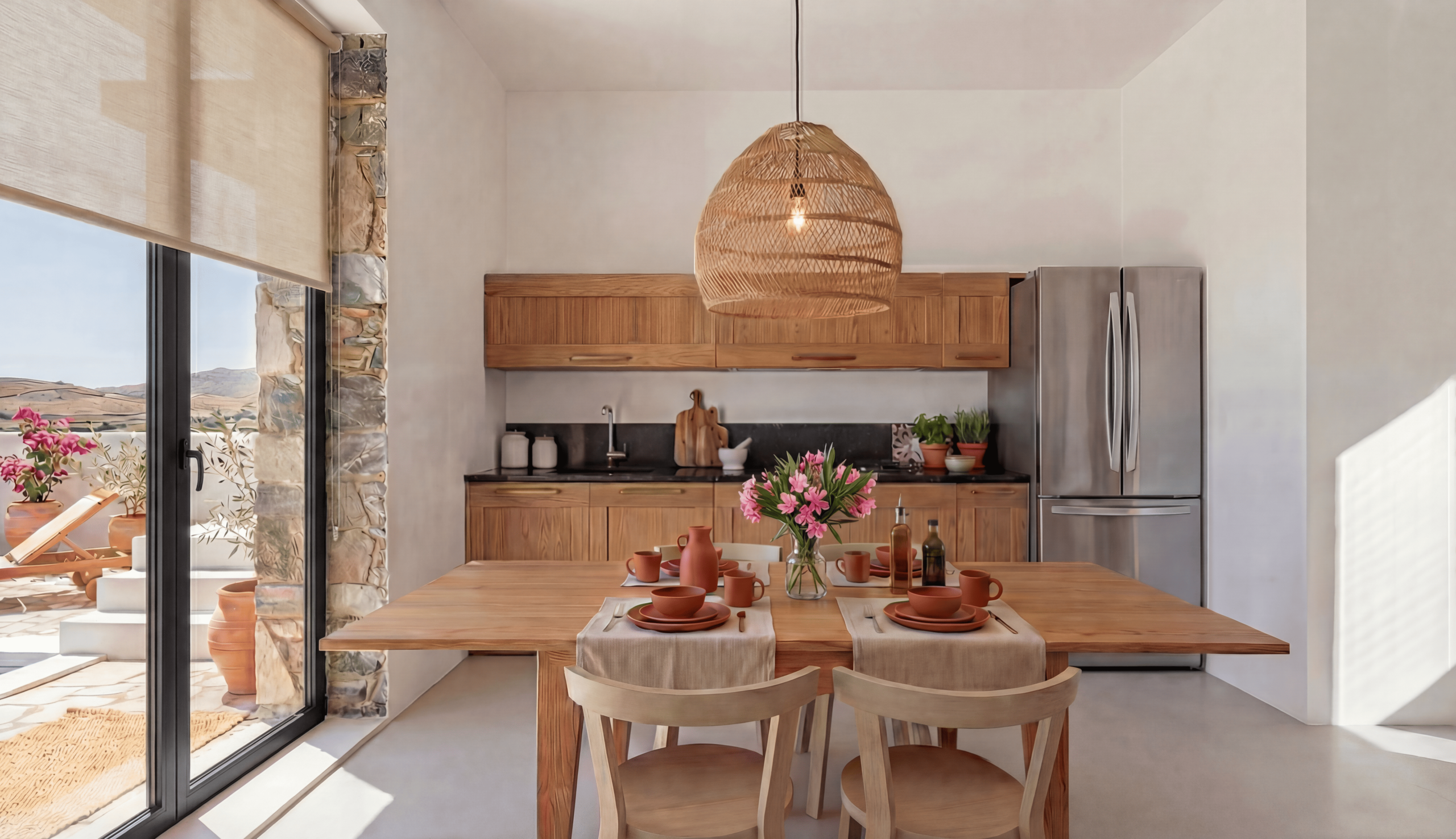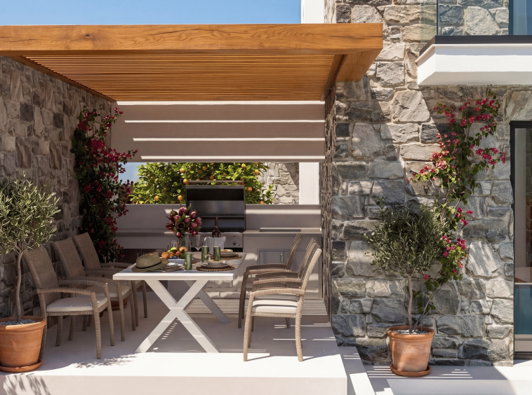 Private gardens, pool terraces and rooftop access provide multiple areas for relaxation and socializing. The roof terraces offer elevated sunset views, while the pool areas are ideal for all-day outdoor living, dining and entertaining under the Cycladic sky.