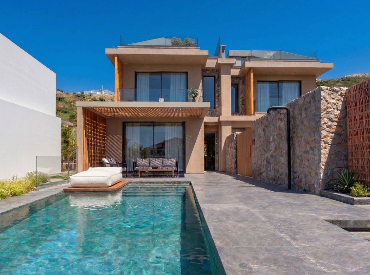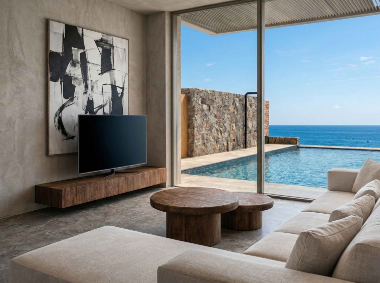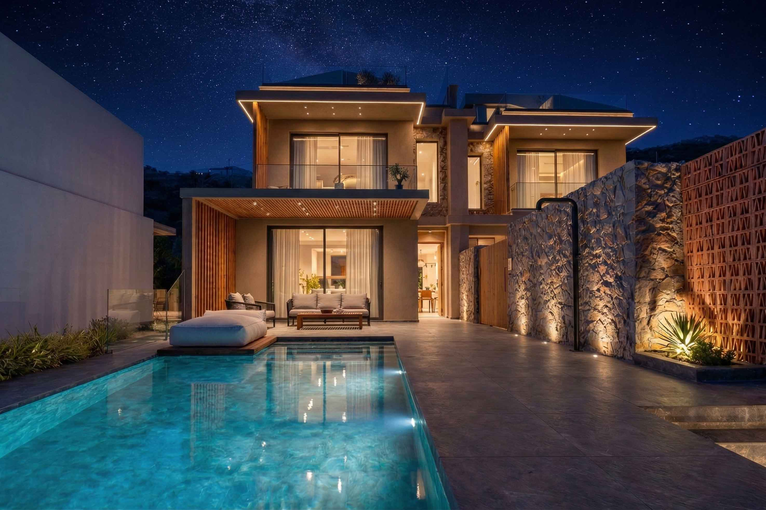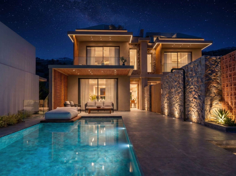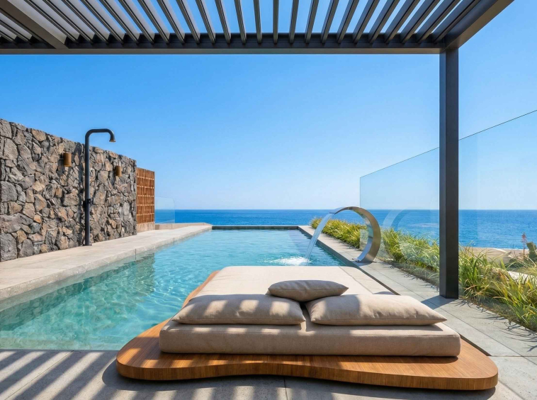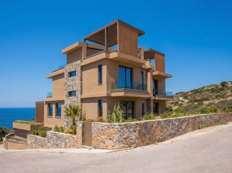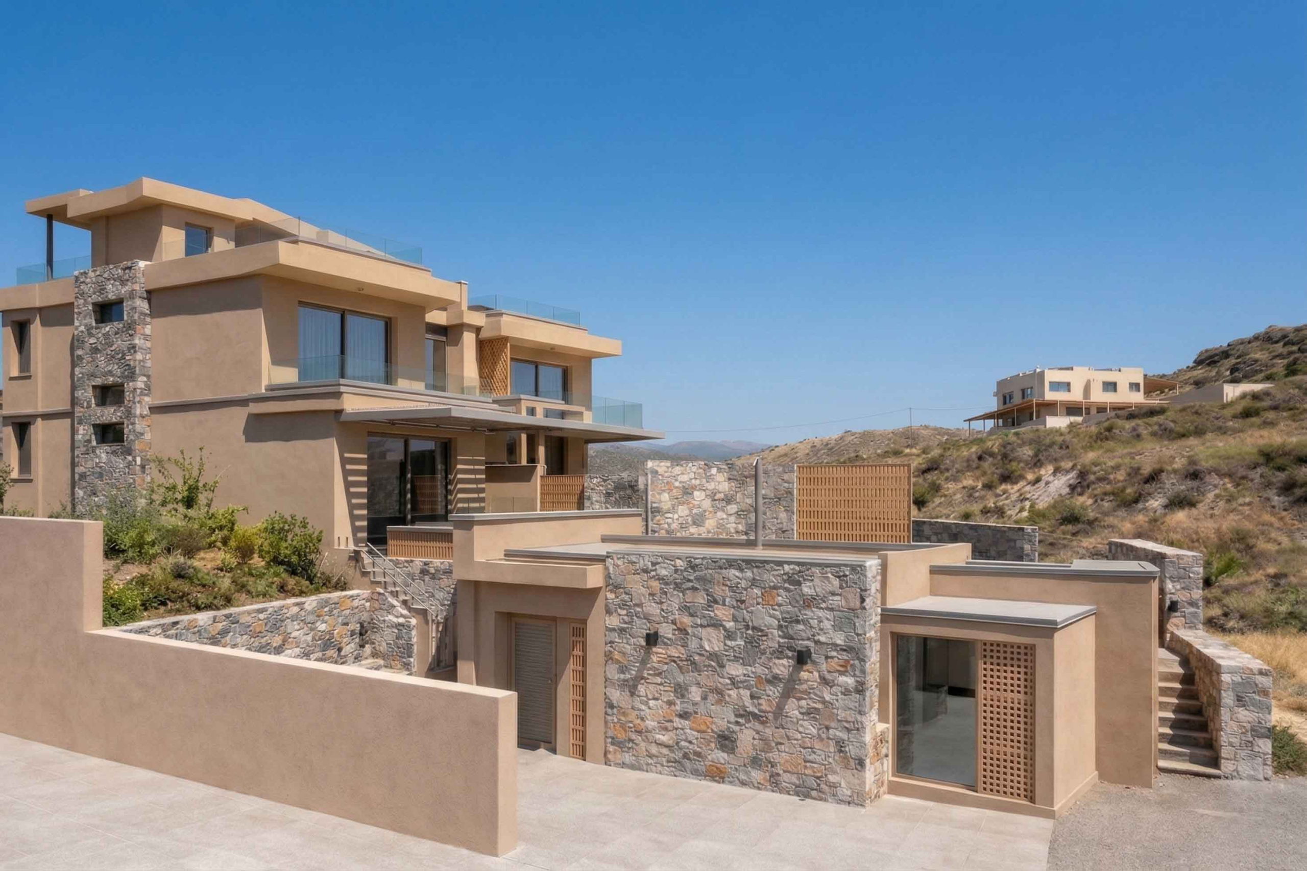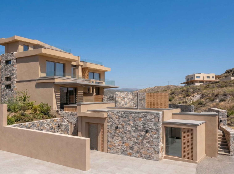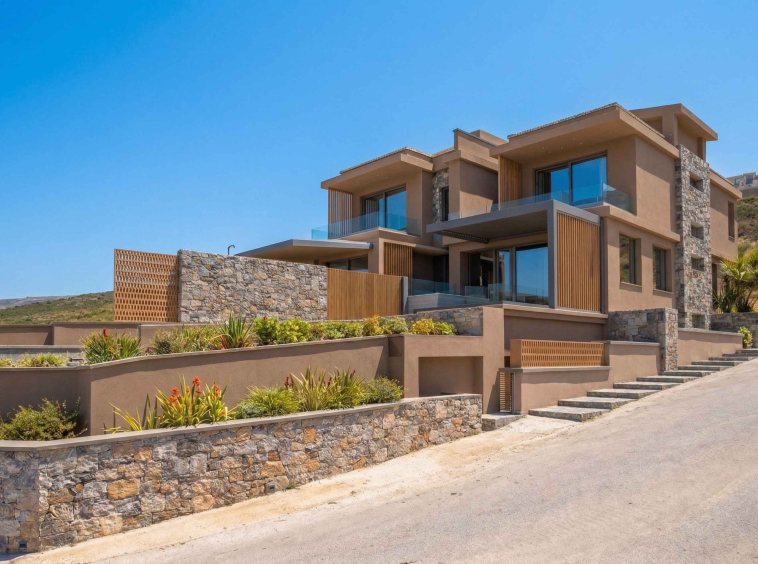 Designed with contemporary architecture and refined natural materials, the residences blend modern comfort with the relaxed atmosphere of the Cretan coastline. Positioned just steps from the beach, the villas offer an authentic waterfront lifestyle surrounded by the natural beauty of southern Crete.