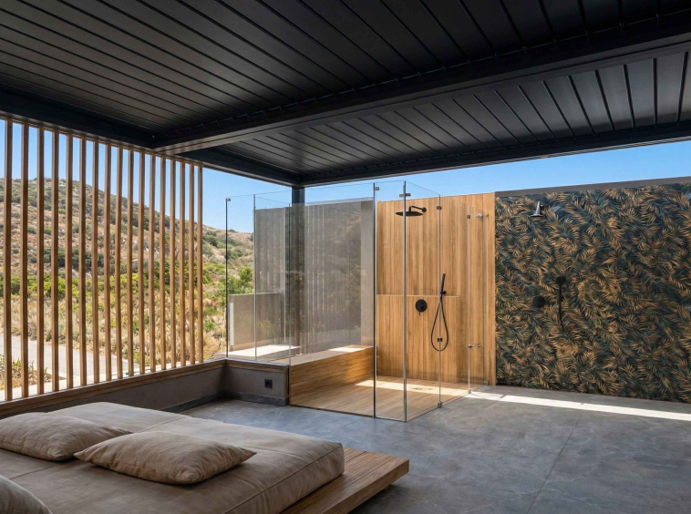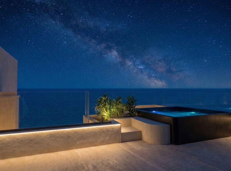 A retractable roof allows guests to enjoy the open sky and the sound of the sea.