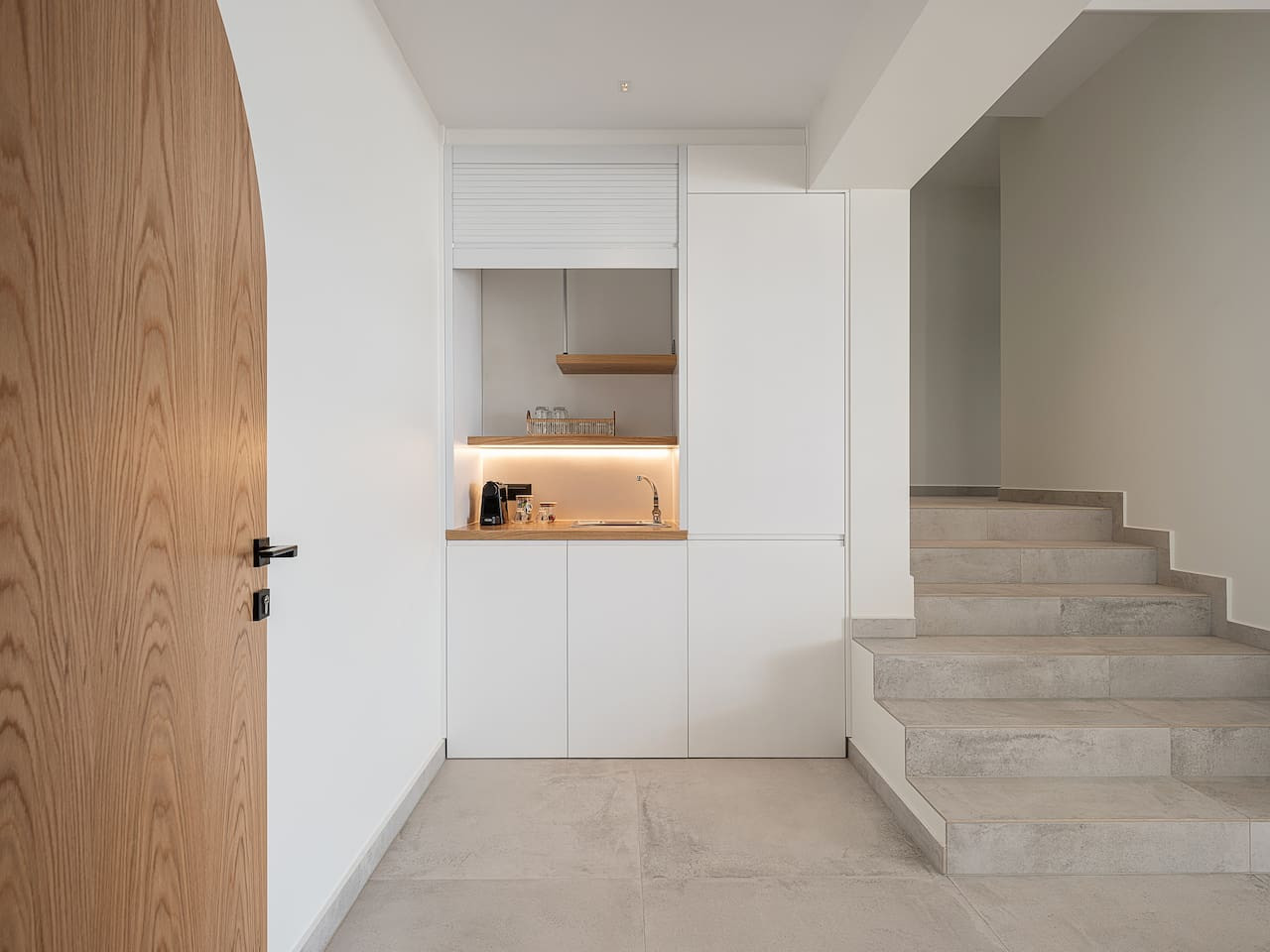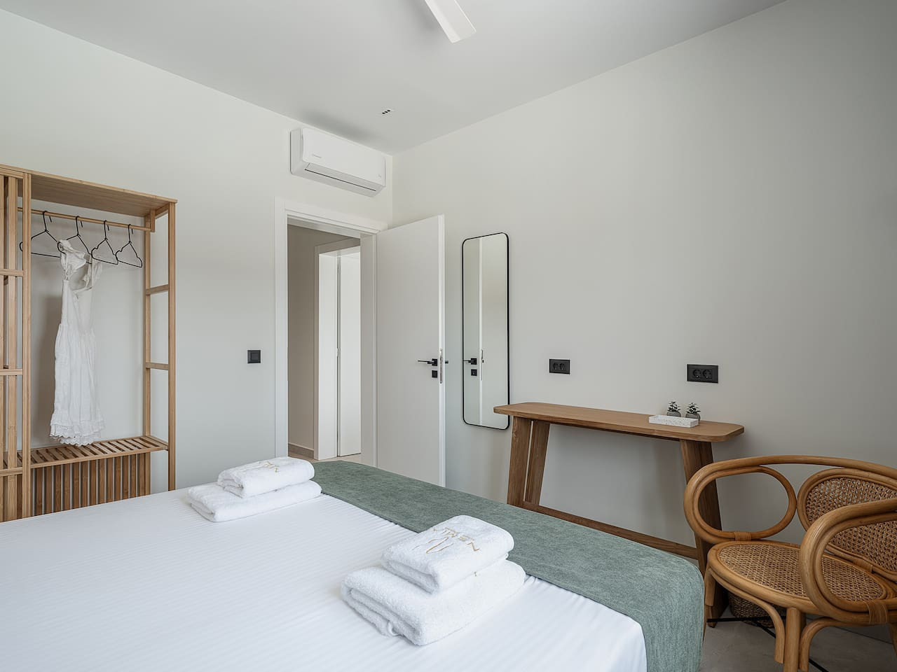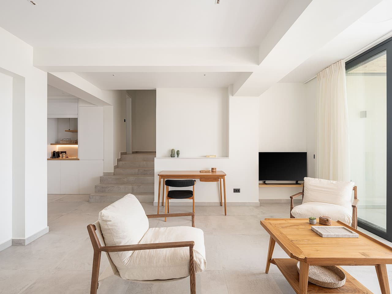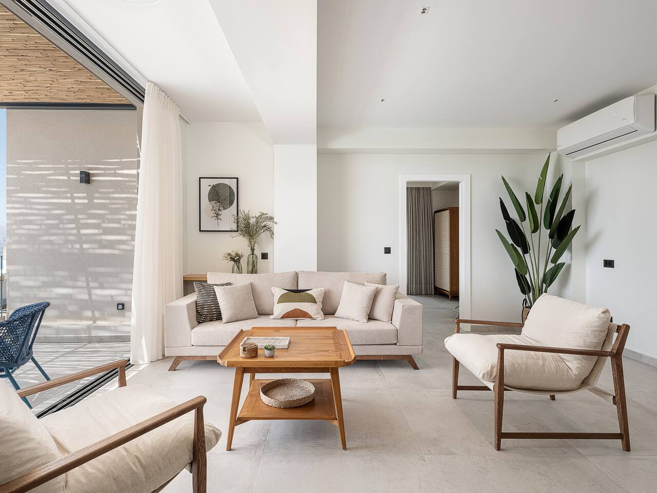 The architecture focuses on harmony and openness. Large windows frame the view of Souda Bay, while multiple lounge areas and secluded corners allow guests to unwind in complete privacy. Coco-Mat natural sleep systems and high-quality furnishings elevate every detail of the stay.