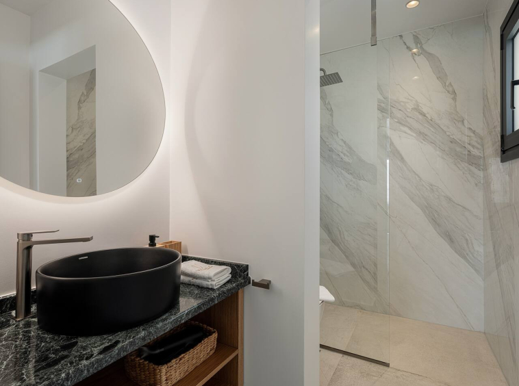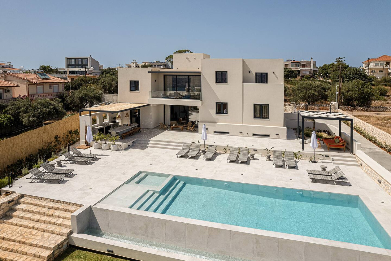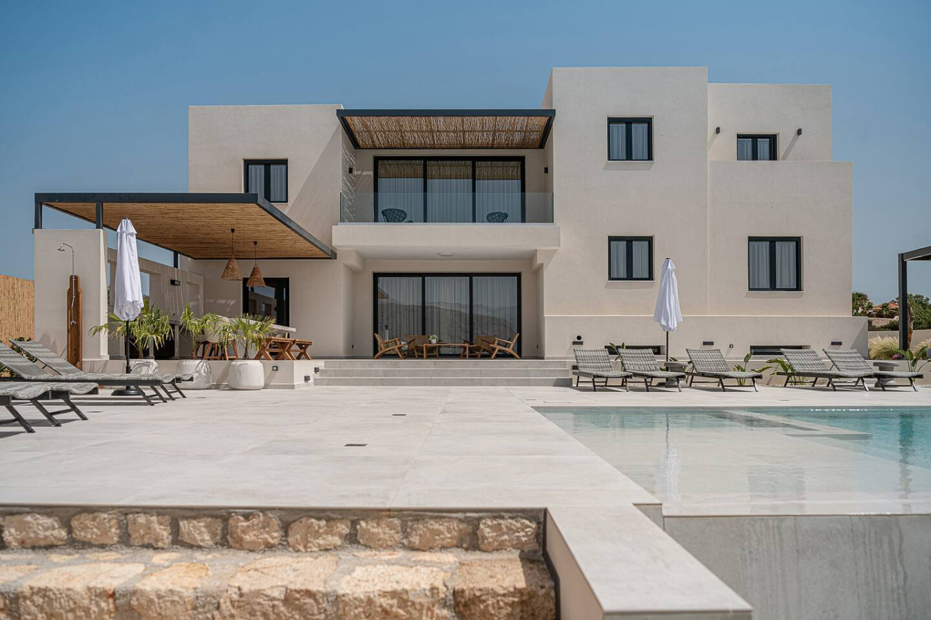 The pool terrace becomes the focal point of the property, offering uninterrupted views of the sea.