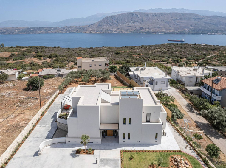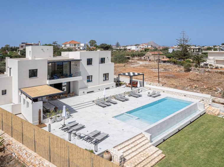 A spacious contemporary retreat just a short drive from Chania, ideal for families and groups seeking privacy, comfort and exceptional sea views. With 312 sqm of interior space and over 2,000 sqm of landscaped outdoor areas, this residence blends elegant design with the natural beauty of Crete. Accommodating up to 14 guests, the property offers generous indoor and outdoor living, creating the perfect setting for a relaxed holiday by the sea.