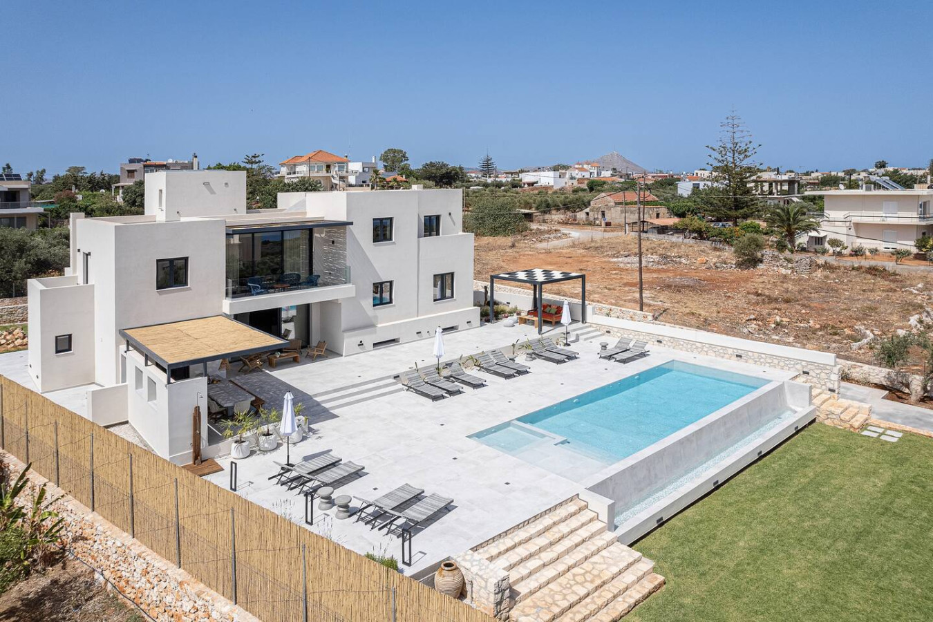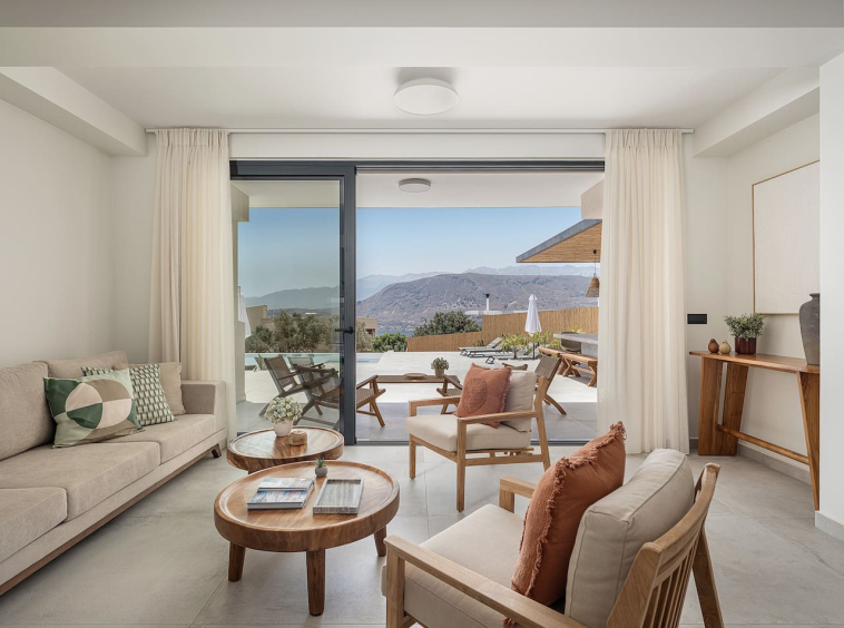 Situated in the tranquil village of Aroni, just 15 minutes from Chania’s Old Town, the location combines privacy with convenient access to beaches and cultural highlights.