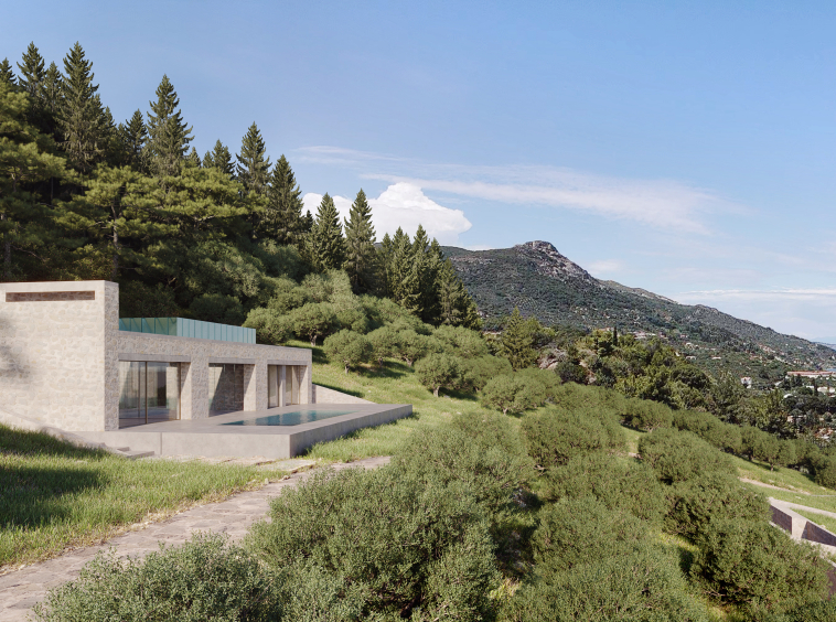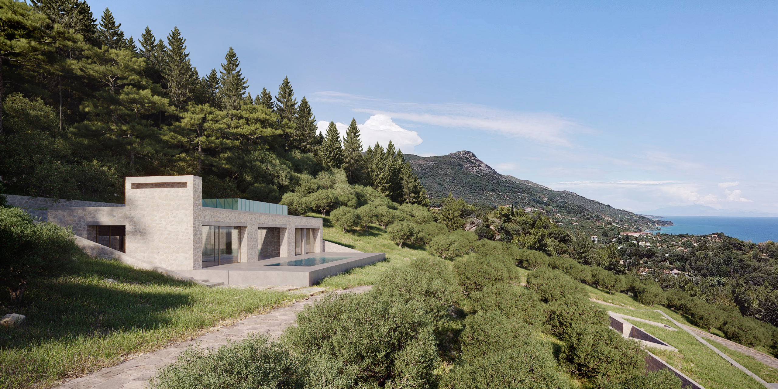 The property is conceived to offer complete privacy, tranquility and immersion in nature, while maintaining a strong visual connection to the Ionian Sea.