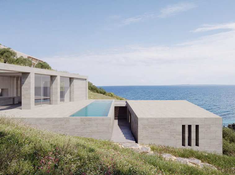 The first residence is a 185 sq.m. villa, embedded into the natural cliff formation.